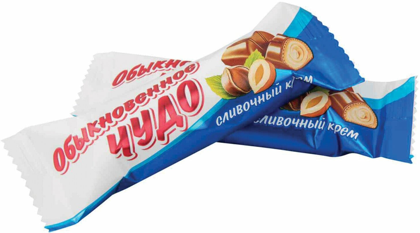Батончик вафельный Славянка Обыкновенное чудо сливочное, 55г. Полые вафельные конфеты, покрытые молочной глазурью, с оригинальной молочно-кремовой начинкой.