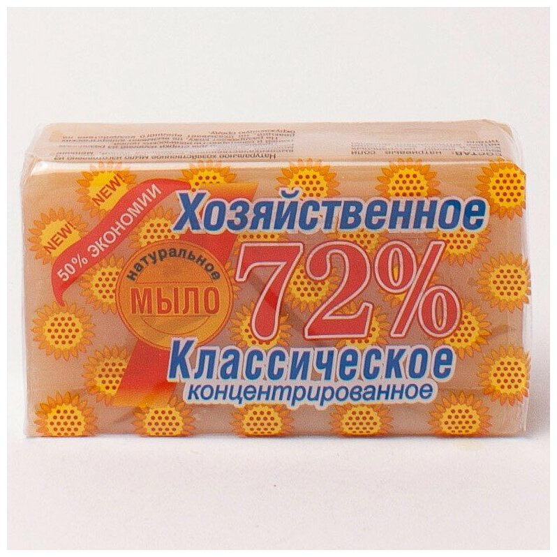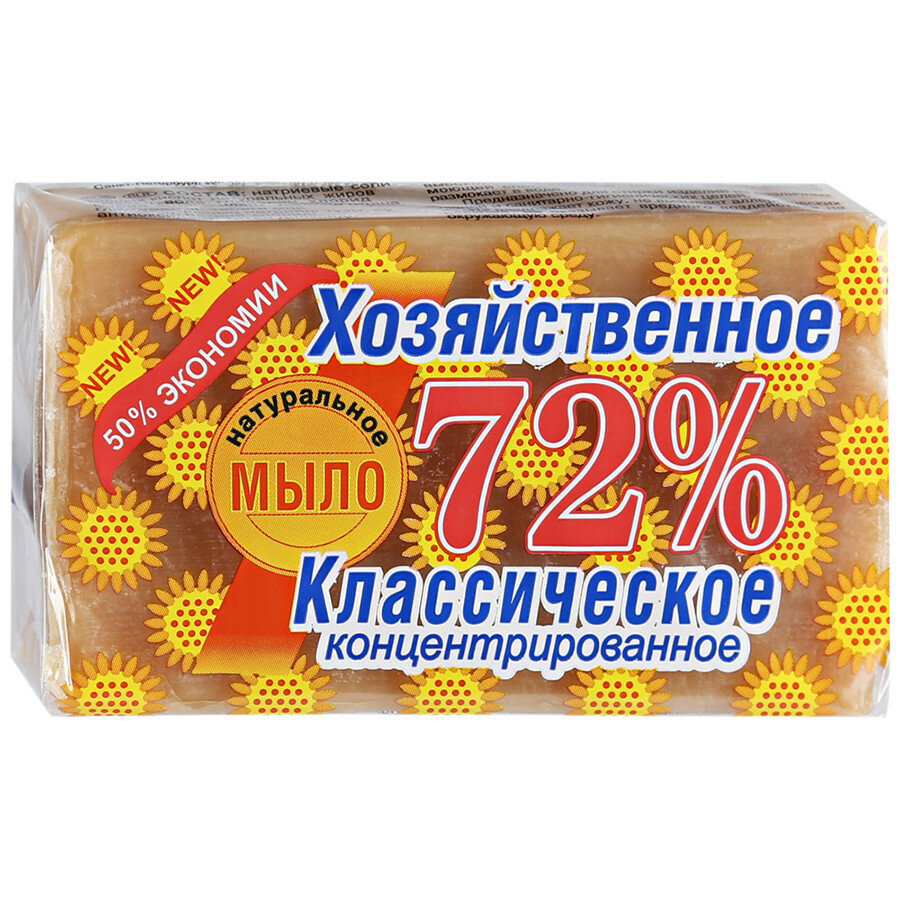 Мыло хозяйственное твёрдое 72 % классическое представляет собой продукт, состоящий из натриевых солей жирных кислот натуральных жиров и масел (кокосового, пальмового, подсолнечного) с добавлением глицерина, пластификаторов, антиоксидантов и смягчающих веществ.Предназначено для стирки изделий из различных тканей, а также для санитарно- гигиенических и промышленных целей.Натуральное хозяйственное мыло 72 % классическое высококонцентрированное изготовлено из высококачественных жиров и масел.Обладает высокой плотностью, что повышает длительность использования.В состав входит глицерин, смягчающий кожу рук.Обладает высокой моющей способностью, мягкой пеной.Отлично отстирывает и отмывает, удобно в использовании.Отсутствие ароматизаторов делает это мыло универсальным в использовании при мытье рук и стирке белья.Не оказывает вредного воздействия на окружающую среду.Не размокает в воде, не трескается при длительном хранении.