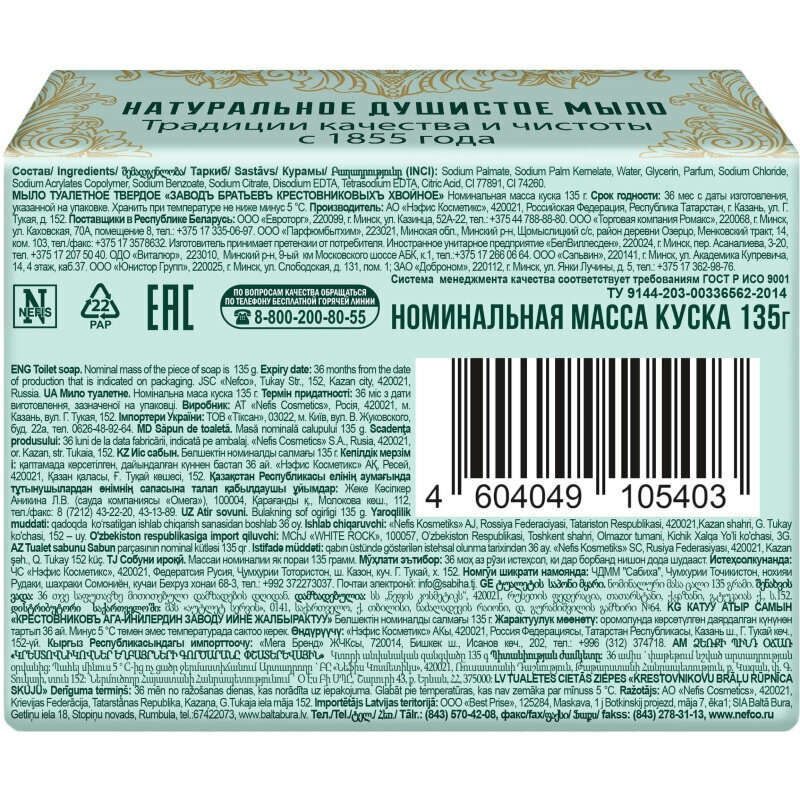 Мыло Заводъ Братьевъ Крестовниковыхъ Хвойное 190г