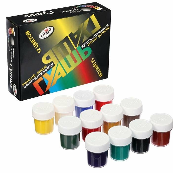 Гуашь Гамма "Художественная" предназначена для детского творчества, выполнения художественно-декоративных, оформительских работ. Краски изготовлены на основе натуральных компонентов и высококачественных пигментов. Краска находится в пластиковых, герметичных баночках с безупречно завинчивающейся крышкой. Краски обладают хорошей кроющей способностью, насыщенностью и чистотой цвета, прекрасно смешиваются между собой, создавая новые чистые оттенки. В наборе 12 цветов. Емкость одной баночки с краской: 20 мл.