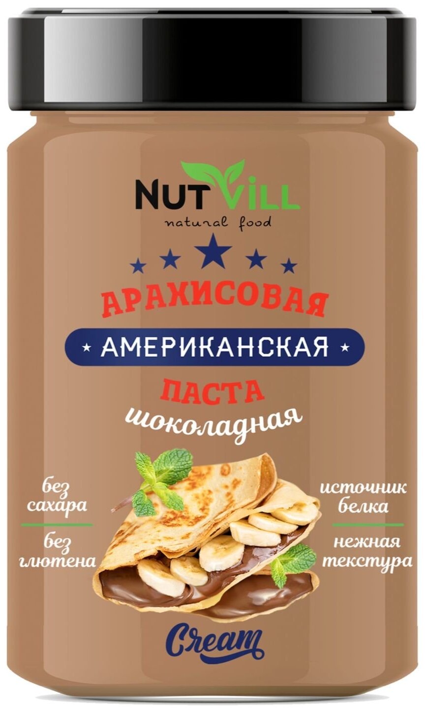 Завтраки и перекусы станут еще вкуснее и полезнее с арахисовой пастой "Американская" NutVill! Потрясающий нежный кремовый вкус зарядит энергией и силами на весь день. Является источником полноценного белка и лизина. Настоящая находка без сахара для сладкоежек! Нежный шоколадный вкус пасты в сочетании с легкой ноткой приятного хруста!Помимо своего приятного вкуса, арахис богат белком, рядом полезных аминокислот, витаминов и минералов. Незаменима для людей занимающихся спортом, положительно сказывается на гормональном фоне. Паста полезна для женщин: улучшает кожу, борется с мимическими морщинами. Улучшает память и концентрацию внимания.Начните свой день, даря организму кладезь витаминов. Паста подойдёт даже самым истинным гурманам!Без сахара, без лактозы.Без глютена.Без ароматизаторов и консервантов.Источник белка.Подходит как людям на традиционном питании, так и веганам и вегетарианцам.Подходит людям, которые занимаются спортивными тренировками и физическими нагрузками.