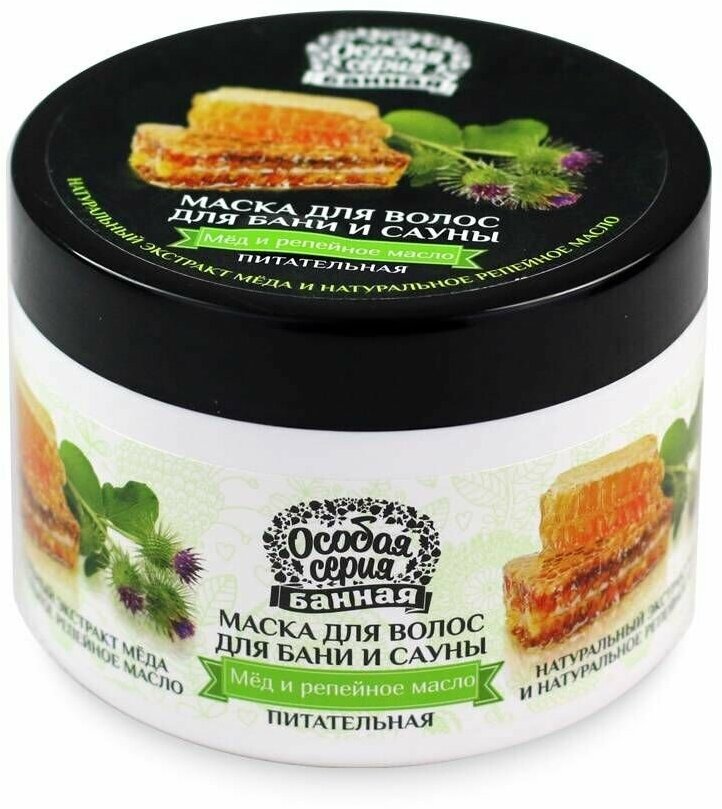 Маска для волос Особая серия Мед и репейное масло для бани и сауны питательная 500мл