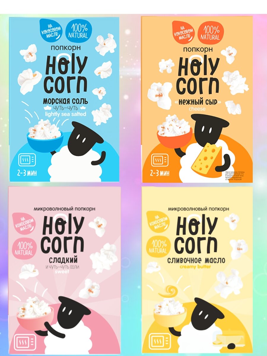 Попкорн для микроволновой печи Holy Corn "Сладкий" - это настоящее удовольствие для любителей горячего, свежего и хрустящего попкорна. Зерна кукурузы + чуть-чуть морской соли + экстракт стевии + микроволновка = идеальный план на вечер! Cкорее кладите упаковку в печь на 2-3 минуты, подождите 2-3 секунды между хлопками. Все, готово! Аккуратно доставайте пачку и наслаждайтесь воздушным как облачко попкорном. #холикорни каждый день!