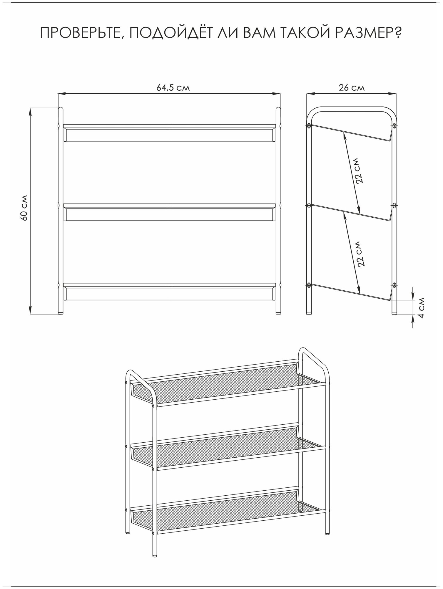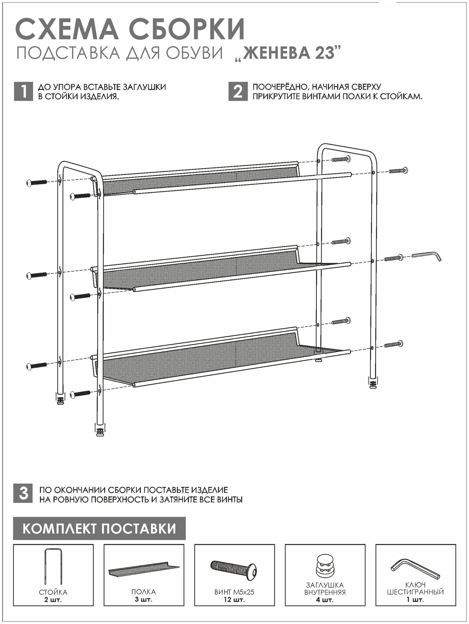Полка для обуви металл пластик 3 секции 64.5х27х60 см черная ЗМИ Женева 23 ПДО Ж23 Ч Hoff