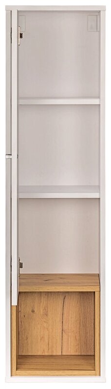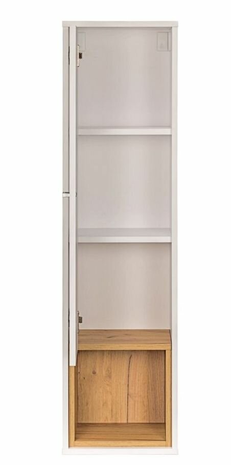 Навесной шкаф Бель — практичное решение для современного интерьера. Навесная конструкция сделает обстановку в комнате более легкой и уютной. Модель включает три закрытых отделения и открытую нишу.Преимущества:универсальная ориентация — навешивание модели универсальное, расположение открытой ниши может быть как сверху, так и снизу;скандинавский стиль — преобладание максимально естественных и светлых оттенков добавят интерьеру домашнего уюта и тепла;модульная серия — модель будет гармонично сочетаться с элементами, входящими в серию мебели Бель.Характеристики:Материал: ЛДСП 16 мм.Материал опор и ручек: пластик.Петли: четырехшарнирные.Максимальная нагрузка на полку: 10 кг.