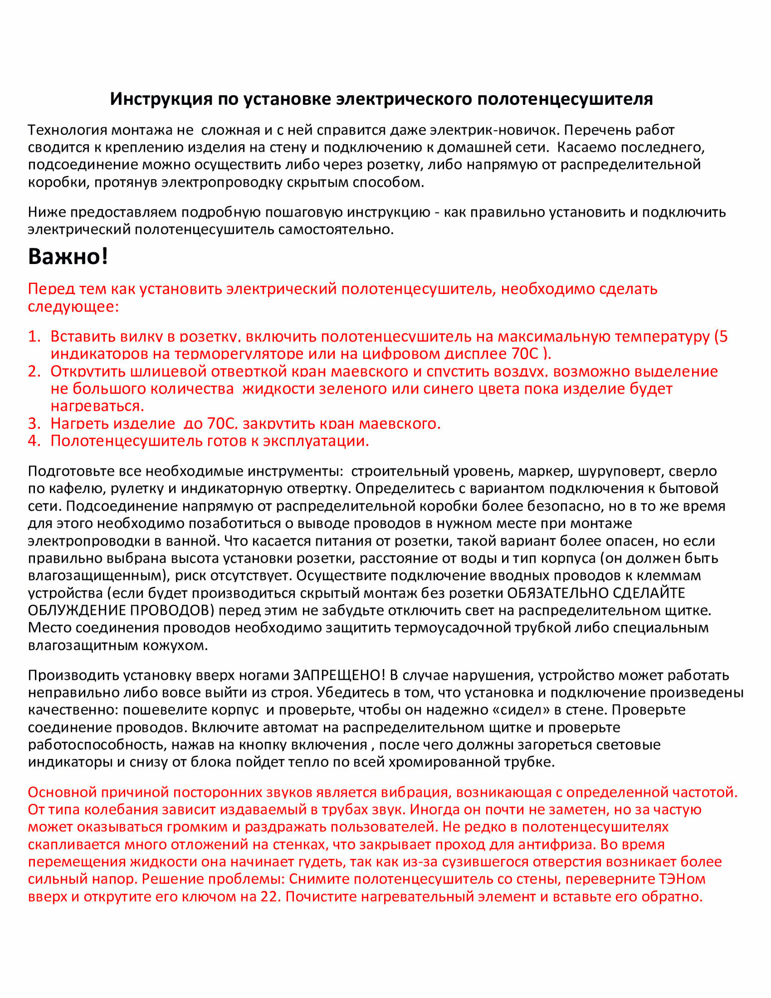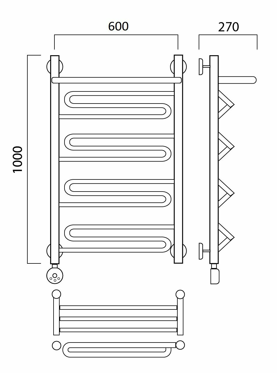 | ВКоробке | Полотенцесушитель - 1 шт. Нагревательный тэн - 1 шт. Терморегулятор - 1 шт. Комплект креплений - 1 шт. Электрический кабель - 1 шт. Полка - 1 шт. Инструкция - 1 шт. |