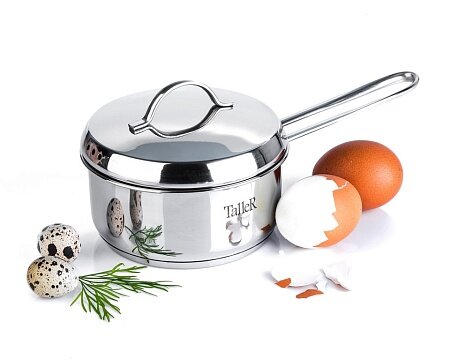 Яйцеварка с крышкой TalleR изготовлена из прочной нержавеющей стали и подойдет для использования на любых плитах, включая индукционные и газовые. Многослойное дно быстро аккумулирует тепло от конфорки и равномерно распределяет его по всей площади изделия, что значительно ускоряет процесс закипания. Яйцеварка оборудована удобной крышкой для сохранения максимальной температуры внутри, имеет комфортную и легкую рукоятку.