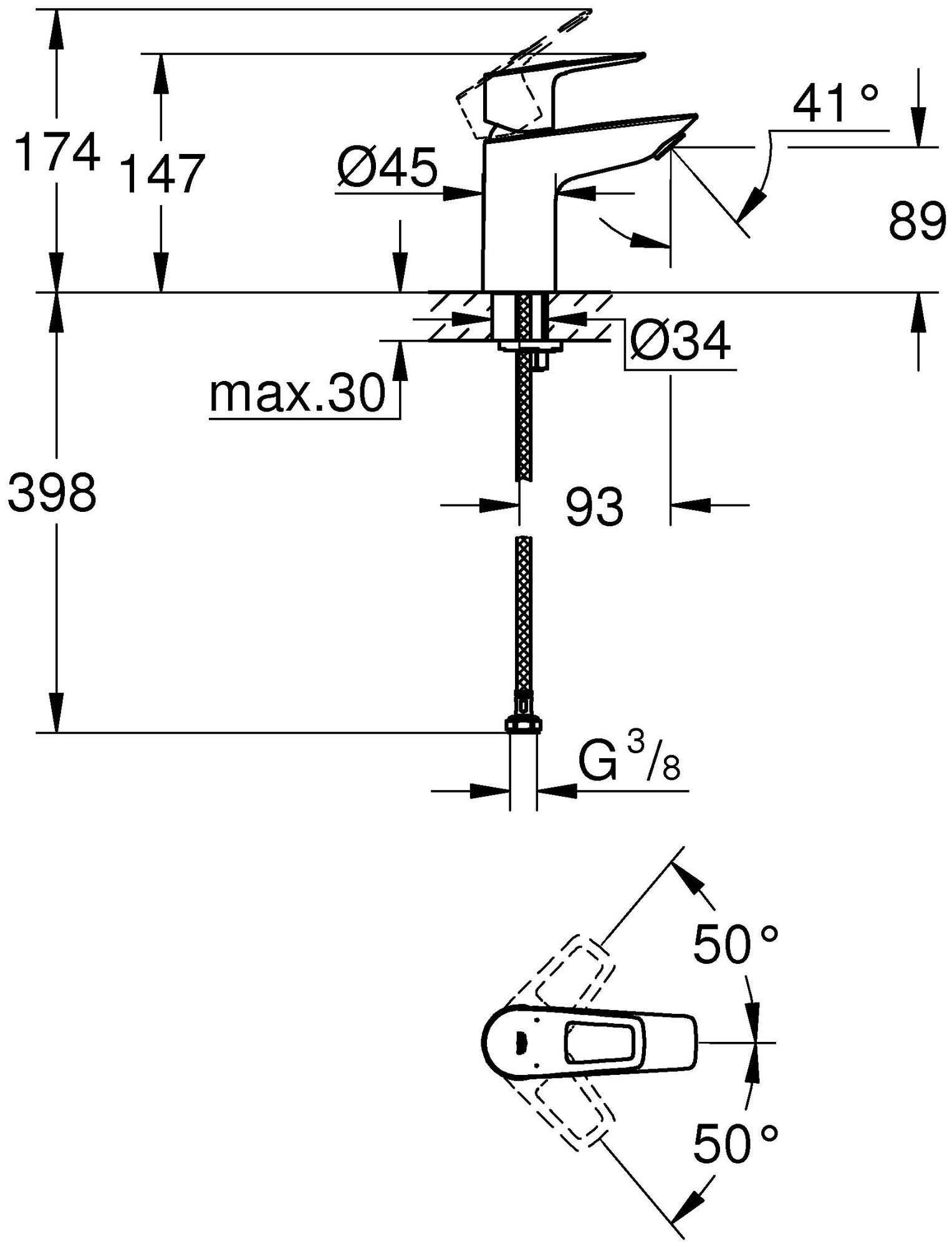 | Диаметр отверстия в раковине | 34 |
