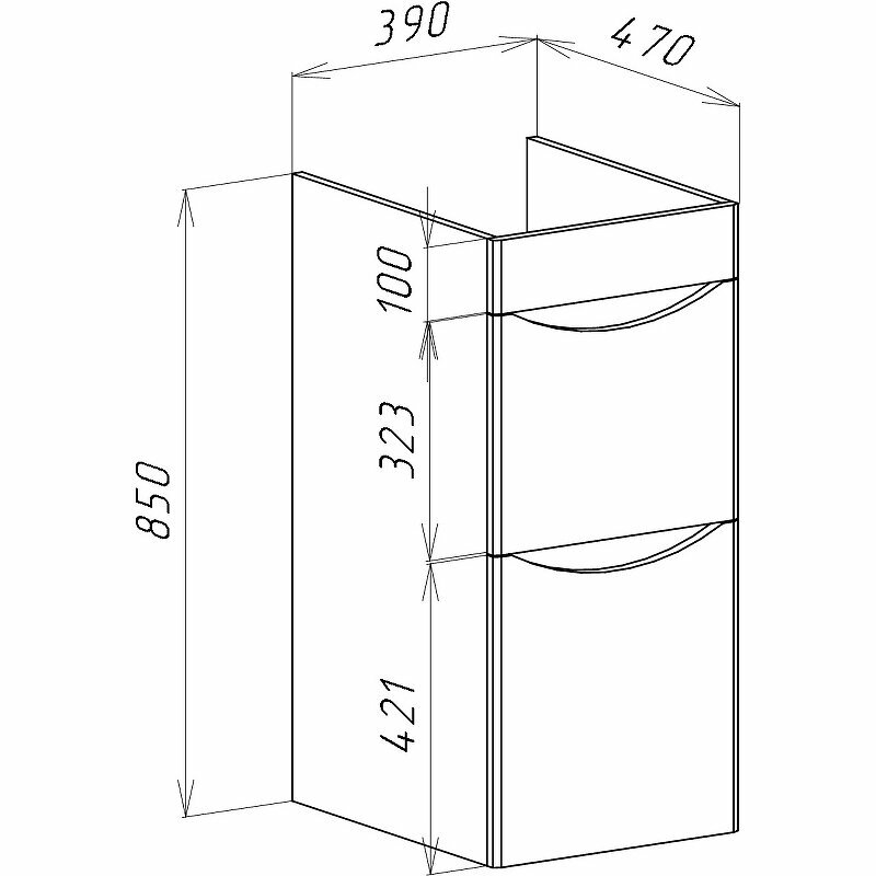 Тумба под раковину Bellezza Олиссия 100 с двумя выдвижными ящиками и местом для стиральной машины. Размеры: Тумба (ш/в/г): 390х850х400 мм КомплектацияТумба для комплекта 1 шт. Комплект креплений 1 шт. Комплект доводчиков 1 шт. Инструкция 1 шт.