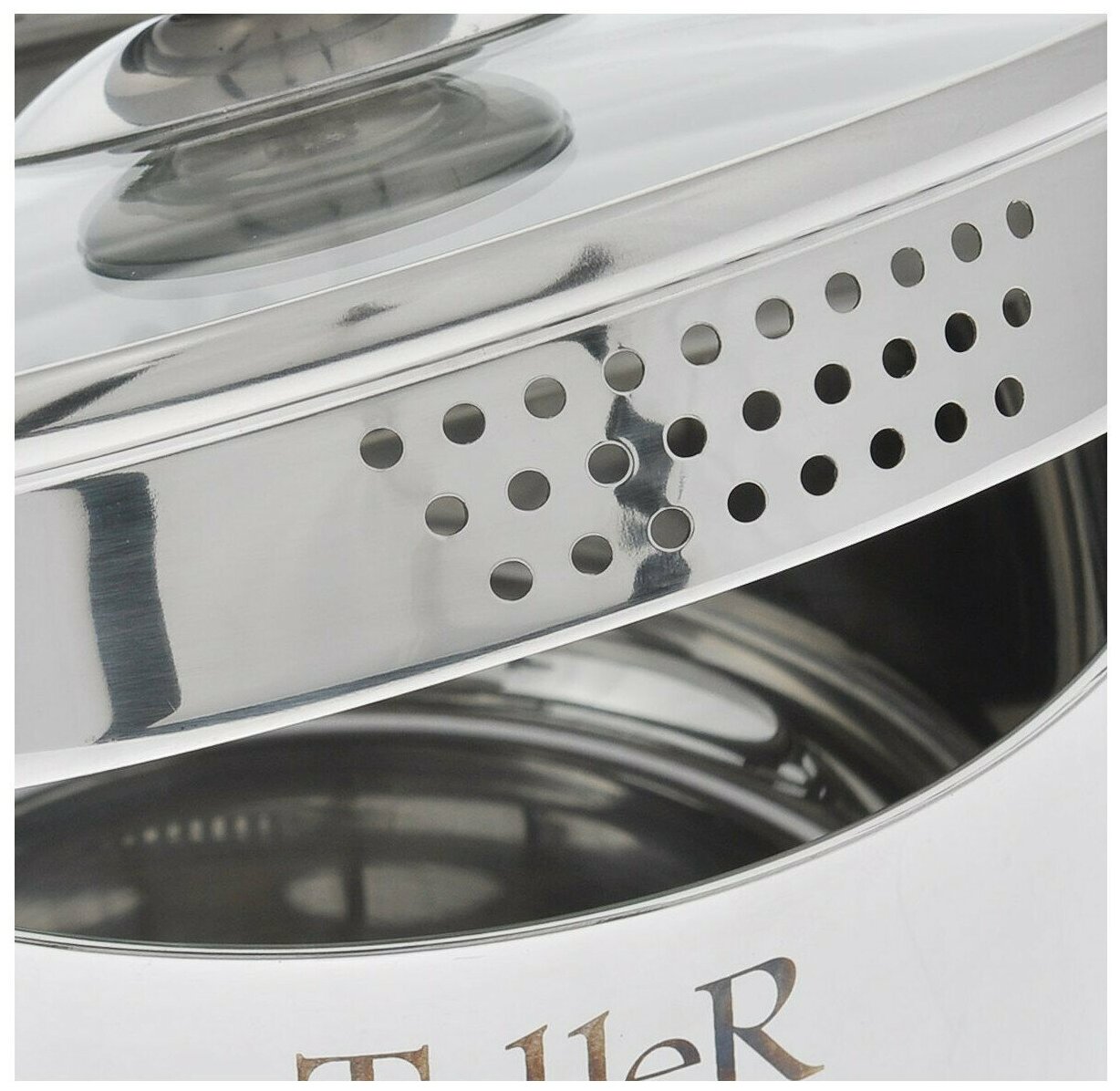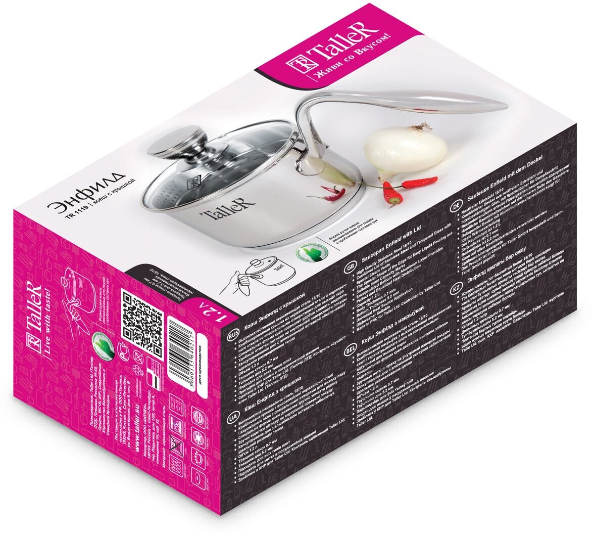 Посуда торговой марки Taller – это сочетание передовых технологий и традиционного английского стиля. Созданная из высококачественных материалов, она воплощает в себе функциональность, практичность и современный дизайн. Ковш Taller изготовлен из высококачественной нержавеющей стали, которая отличается прочностью, устойчивостью к коррозии и отсутствием вредных соединений при контакте с продуктами. Он оснащен эргономичной ручкой необычной формы и крышкой из термостойкого стекла.