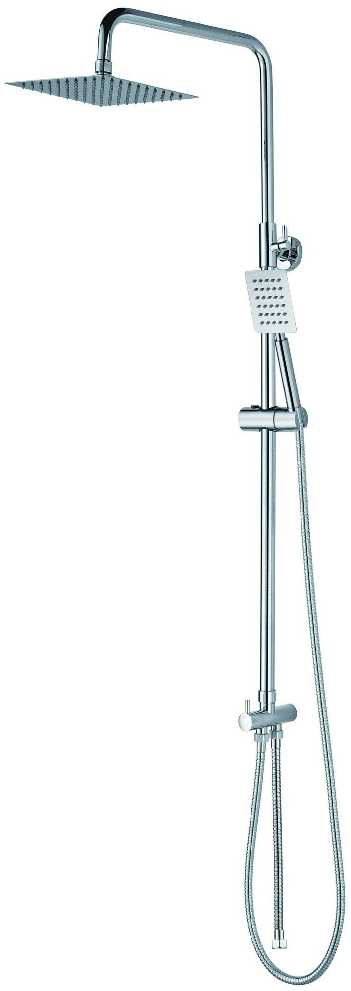 | Особенности | Комплектация:душевая штанга раздвижная, душевая лейка, тропический душ, держатель душевой лейки поворотный, душевой шланг с латунными гайками, индивидуальный пакет, паспорт, гарантийный талон |