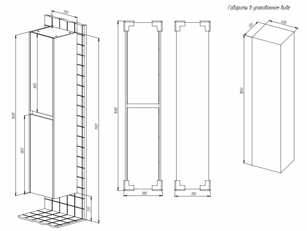 - Размер (ШхВхГ): 350х1600х320 мм.