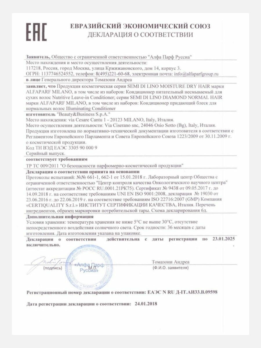 | Коллекция | ALFAPARF MILANO SDL M Nutritive Leave In Conditioner |