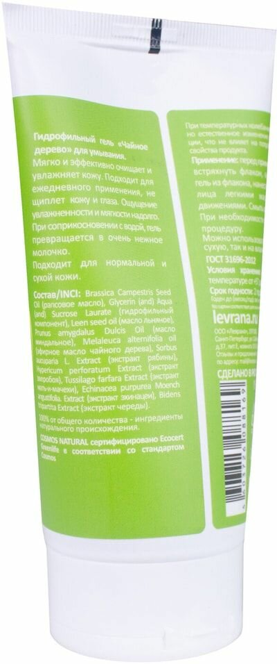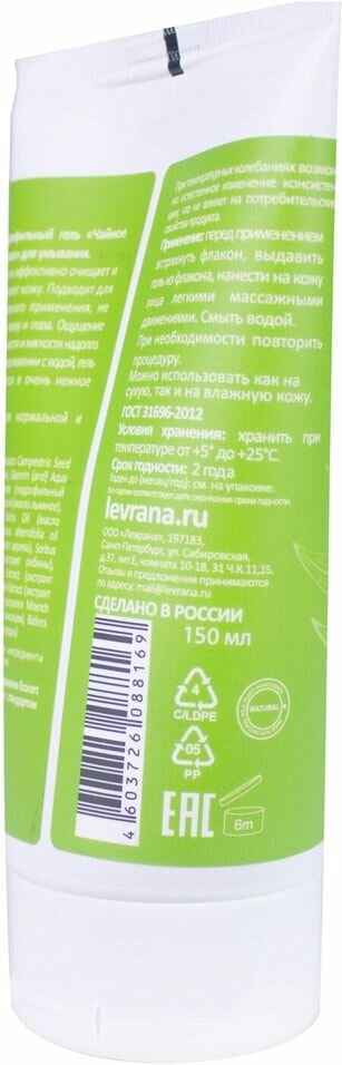 Гель Levrana для умывания Чайное Дерево, 200 мл гидрофильный