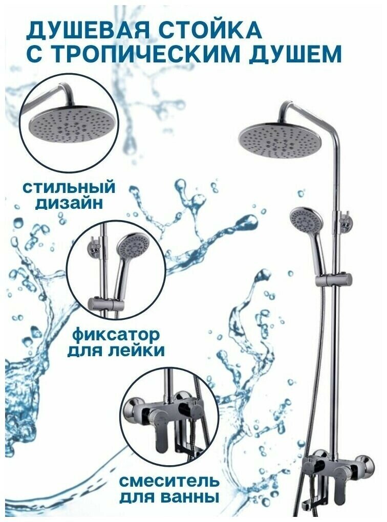 Душевая стойка Fashun хром поможет вам создать прекрасный дизайн ванной комнаты, который будет радовать вас многие годы. Душевые стойки Fashun включают в себя все необходимые функции для современной душевой. Благодаря оптимальному диаметру душевой лейки в 10 см, вы получите полное наслаждение от принятия душа. Высота душевой штанги у Fashun 132.5 см, позволит регулировать высоту размещения лейки в широком диапазоне. Душ Fashun имеет 3 режима настройки потока струи, что даст возможность настройки системы под себя. Fashun оснащен шлангом 150 см, это идеальная длина для комфортного использования. Материал шланга металлический отлично препятствует скручиванию, и долгое время не теряет свои свойства. Диаметр верхнего (тропического) душа, которым оснащен составляет 22 см.
