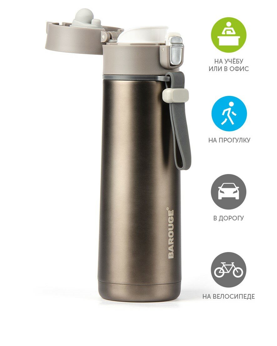 Термобутылка BAROUGE Travel Bottle, оснащена удобным ремешком для переноски, интересные цветами и гладким глянцевым покрытием, без сомнения выделяется среди других термобутылок.