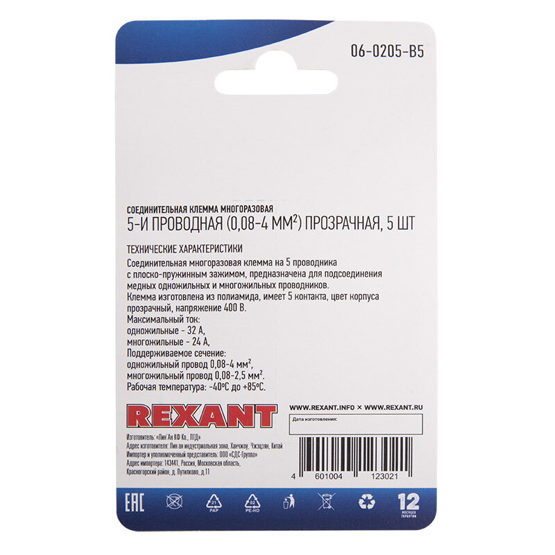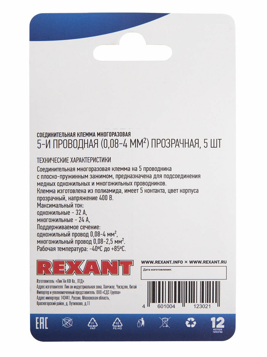 | Сечение многожильных проводников | от 0.08 до 2.5 мм² |