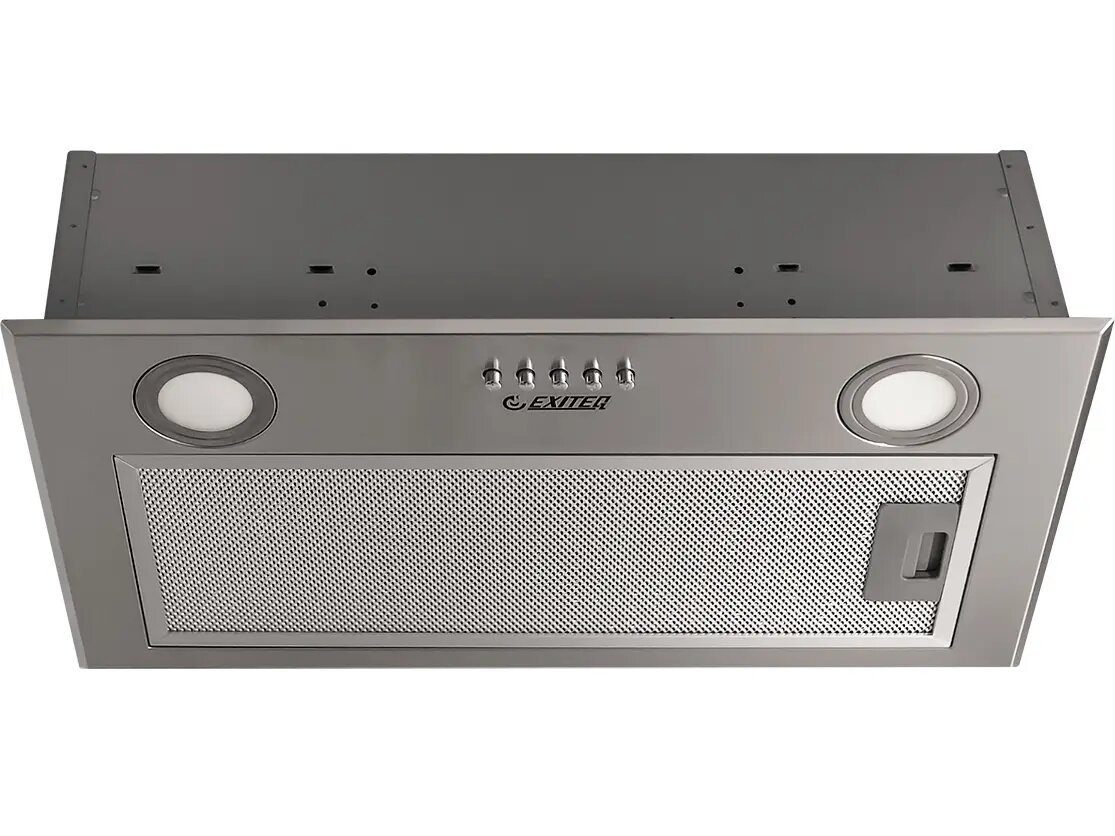 Встраиваемая вытяжка Exiteq отличается компактными габаритами (ширина – 52,5 см) и достаточной производительностью (400 м2/ч). Модель выполнена в стальном оттенке, благодаря чему она органично дополнит любой интерьер кухни – как классический, так и современный.