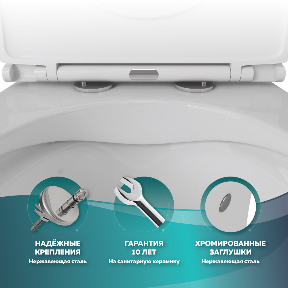 Безободковый компакт-унитаз VIND Cirkel-GL сможет удивить вас системой двойного горизонтального слива на 3/6 литров, микролифтом и ультратонким сидением из дюропласта.