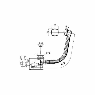 | Комплектация | корпус сифона с системой перелива; поворотная стальная накладка; пробка из хромированной стали; хромированная решетка слива из латуни; монтажный набор; профильное уплотнение |