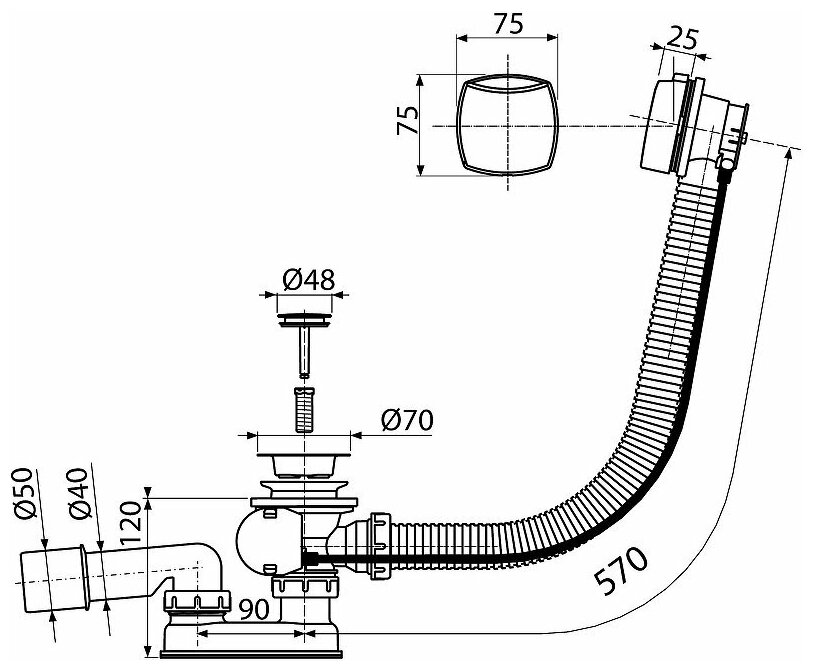 - Длина сифона: 570 мм.