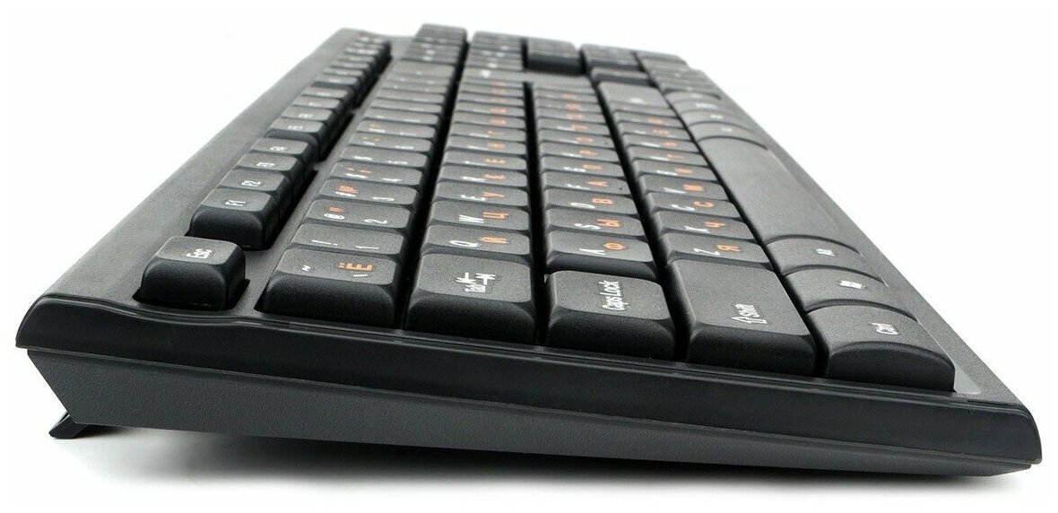 Гарнизон это классическая проводная клавиатура, способная удовлетворить потребности рядового пользователя. Рассматриваемая модель подключается к ПК при помощи интерфейса USB. За счет специальных ножек осуществляется регулировка угла наклона. Клавиатура обладает классической раскладкой клавиш («Enter» занимает два ряда клавиатуры, а в основном ряду на одну клавишу больше). Цифровой блок и светодиодные индикаторы "CapsLock", "NumLock", "Scroll Lock" традиционно расположились в правой части рабочего пространства. Комфортно работайте с текстом, переписывайтесь с друзьями и многое другое вместе с клавиатурой Гарнизон!