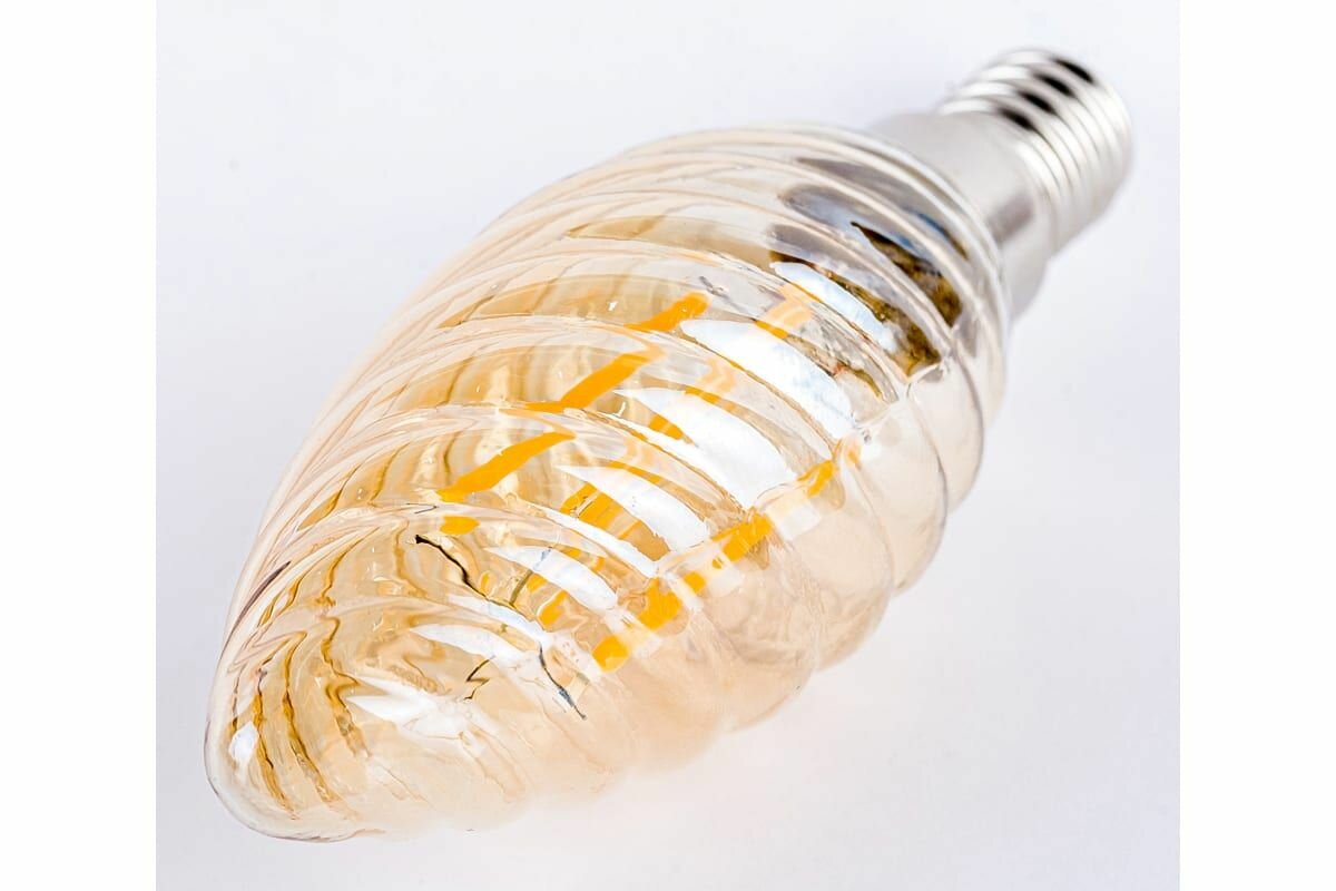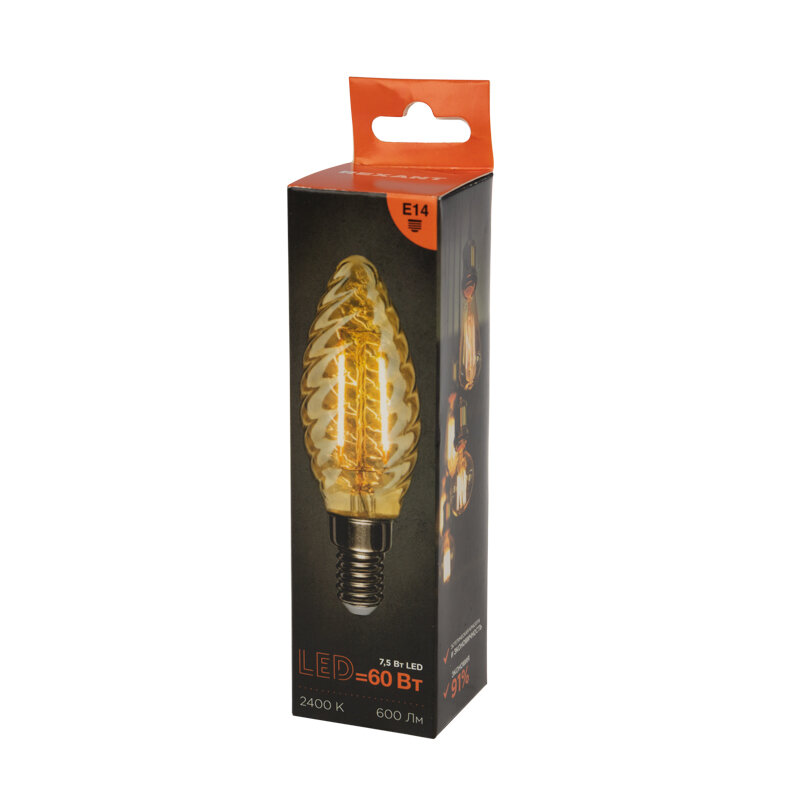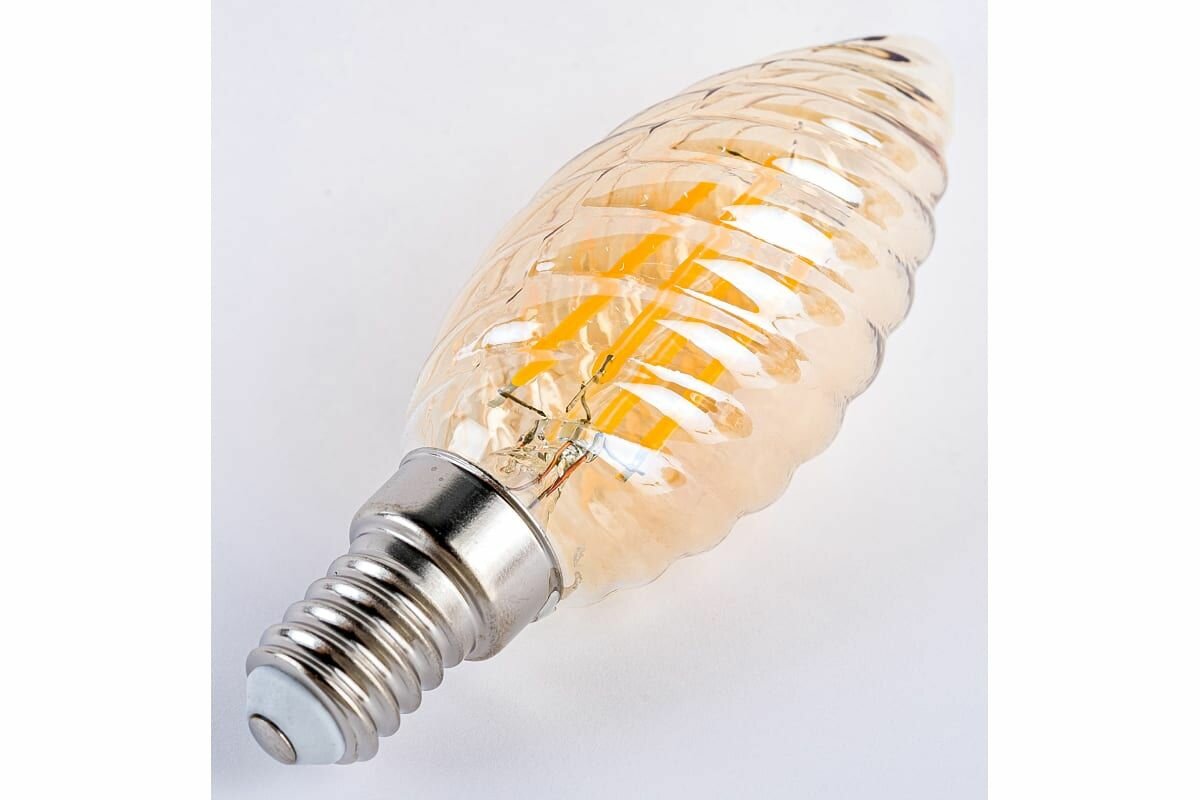 Филаментные лампочки LCW35 обошли по своим преимуществам светодиодные источники света и лампы накаливания. Изделия представляют собой стеклянную колбу с газом и нитевидном светодиодом на сапфировом основании. Лампа обеспечивает равномерность теплого белого свечения с температурой 2700 К и световым потоком 600 Лм во всех направлениях и под углом 320 градусов. Золотистая колба в форме витой свечи с цоколем Е14 позволяет монтировать лампу во многие осветительные приборы - как в открытые, так и в закрытые плафоны. Светодиод мгновенно зажигается, не нагревается, не искажает реальные оттенки предметов: рассчитан на долговечную службу - 30000 часов. Мощность лампочки 7, 5 Вт аналогичная мощности лампы накаливания 60 Вт. Лампа обладает минимальным энергопотреблением, насыщенностью свечения, упрощенной утилизацией, эффективным отведением тепла. Лампу можно устанавливать возле натяжных и гипсокартонных потолков. Изделие можно отнести к одному из лучших достижений LED-технологий.