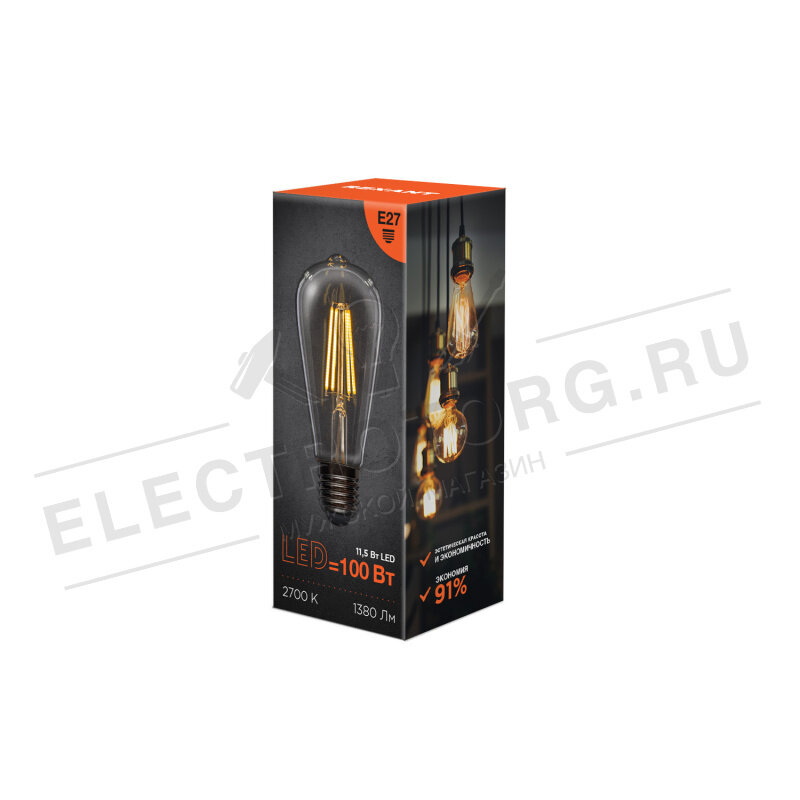 Филаментные недиммируемые лампочки ST64 обошли по своим преимуществам светодиодные источники света и лампы накаливания. Изделия представляют собой стеклянную колбу с газом и нитевидном светодиодом на сапфировом основании. Лампа обеспечивает равномерность теплого белого свечения с температурой 2700 К и световым потоком 1380 Лм во всех направлениях и под углом 320 градусов. Прозрачная колба в форме груши с цоколем Е27 позволяет монтировать лампу во многие осветительные приборы - как в открытые, так и в закрытые плафоны. Светодиод мгновенно зажигается, не нагревается, не искажает реальные оттенки предметов: рассчитан на долговечную службу - 30000 ч. Мощность лампочки 11, 5 Вт аналогичная мощности лампы накаливания 100 Вт. Лампа обладает минимальным энергопотреблением, насыщенностью свечения, упрощенной утилизацией, эффективным отведением тепла. Лампу можно устанавливать возле натяжных и гипсокартонных потолков. Изделие можно отнести к одному из лучших достижений LED-технологий.