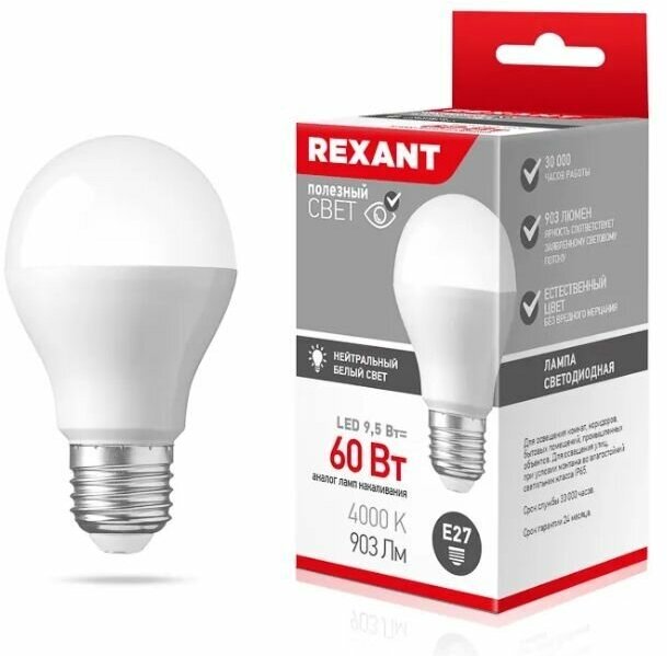 Светодиодная лампа Rexant – гарантия применения передовых технологий производства как комплектующих, так и полного цикла автоматизированной сборки и контроля качества изделия на каждом этапе, вплоть до упаковки товара. Преимущества: - Электромагнитная совместимость (ЭМС);