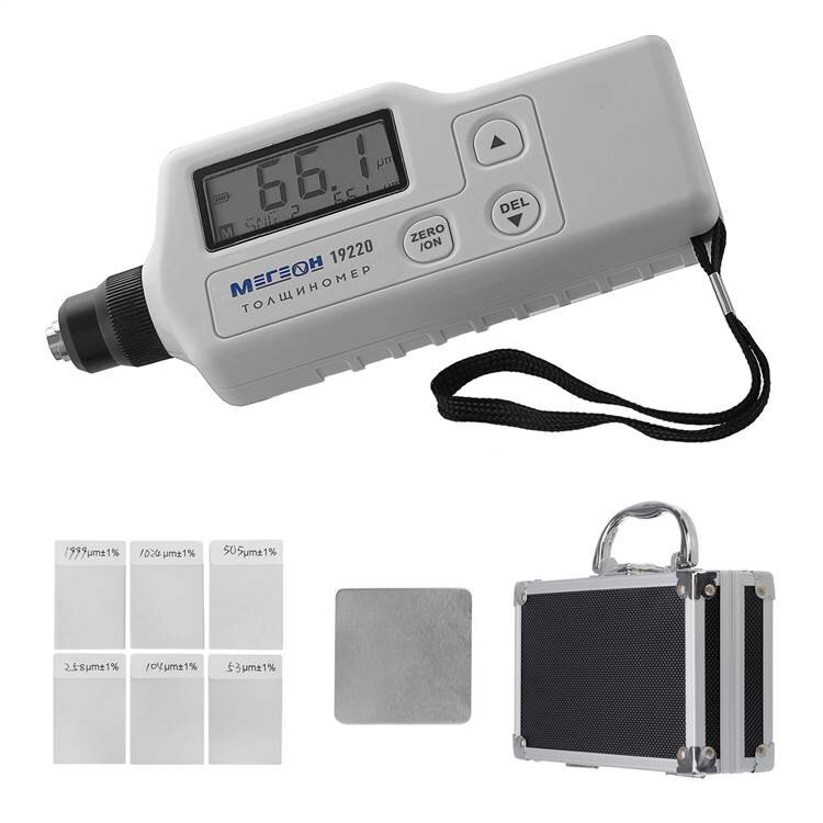 | Комплектация | 1. Измеритель толщины покрытий МЕГЕОН 19220– 1 шт, 2. Калибровочные пластины – 6 шт., 3. Кейс для переноски и хранения - 1шт., 4. Батарея 9В тип 6F22 «Крона» – 1шт., 5. Руководство по эксплуатации – 1экз., 6. Гарантийный талон – 1экз. |