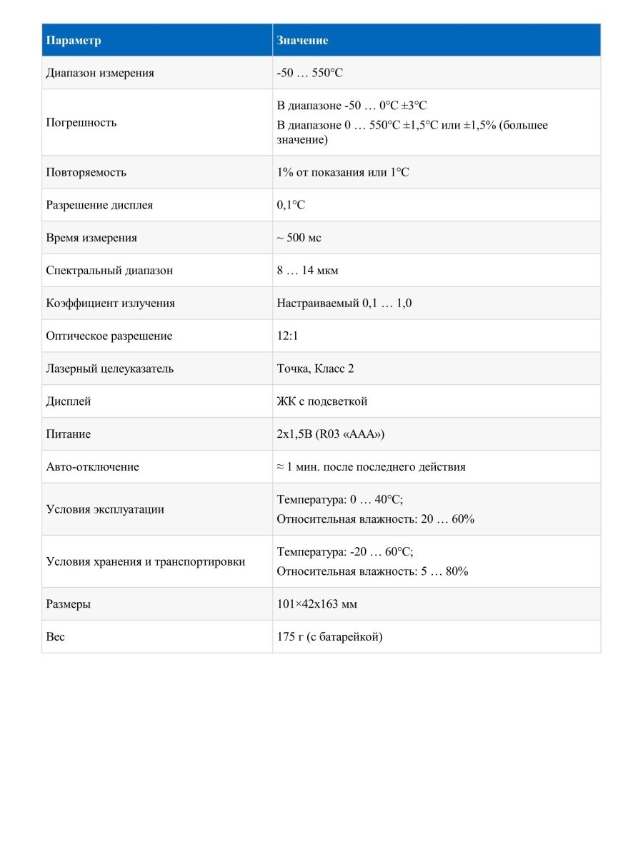 | Макс. измеряемая температура, °С | 550 |