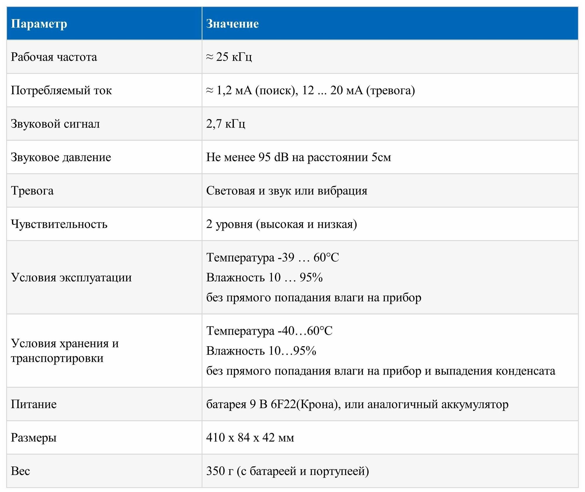 | Оповещение о тревоге | Вибрация, Звуковая, Световая |