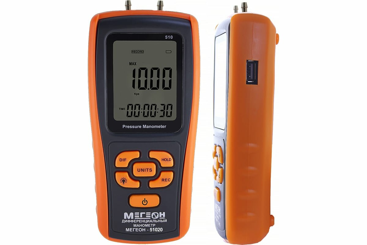 | Комплект поставки | 1. Цифровой дифференциальный манометр МЕГЕОН 51020 - 1шт, 2. Батарейки тип LR03 (ААА) – 4шт., 3. Силиконовая трубка - 2 шт., 4. Трубка ПВХ - 2 шт., 5. Абель USB - USB - 1 шт., 6. Компакт-диск с ПО - 1 шт., 7. Руководство по эксплуатации - 1 экз, 8. Гарантийный талон - 1 экз. |