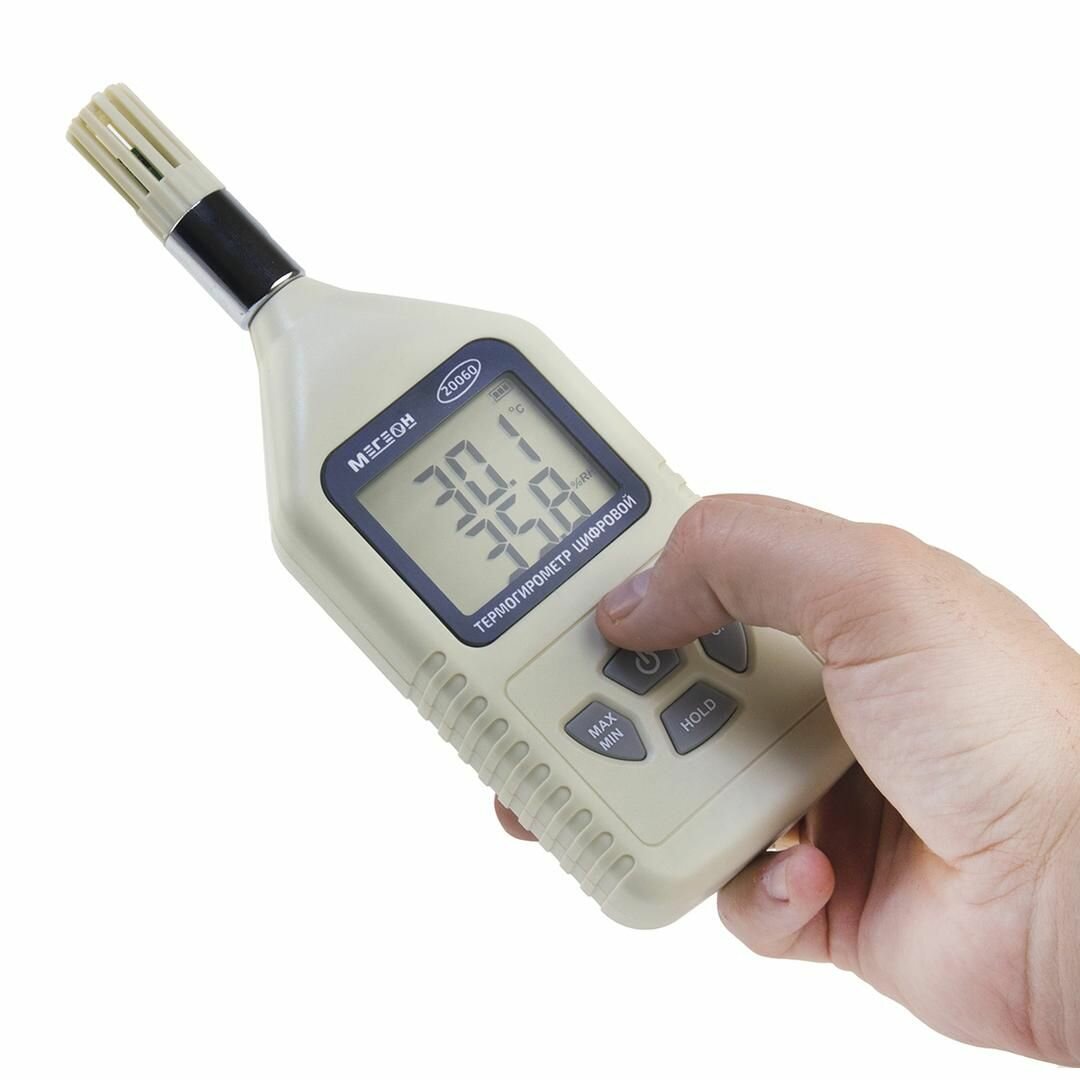 Цифровой термогигрометр МЕГЕОН представляет собой компактное устройство для измерения параметров влажности и температуры воздуха. Благодаря использованию качественных комплектующих и современного программного обеспечения прибор позволяет одновременно проводить измерения температуры воздуха и относительной влажности.