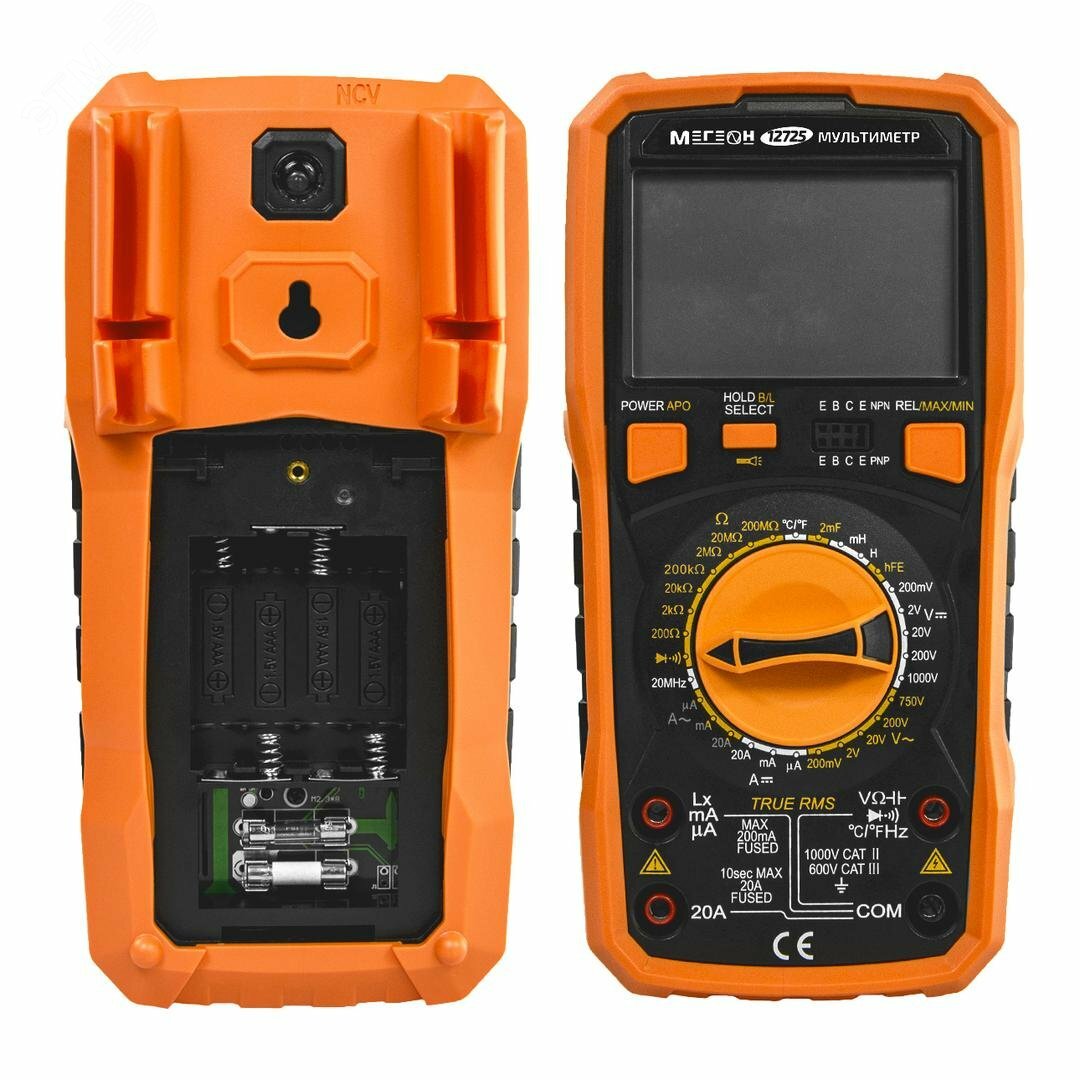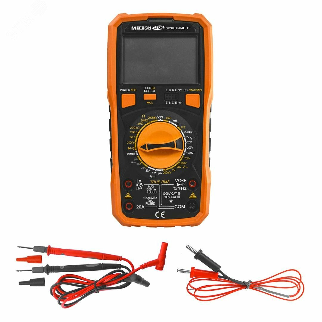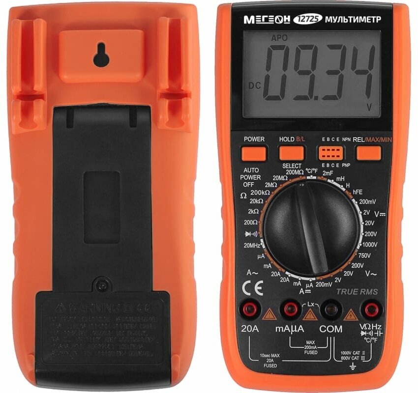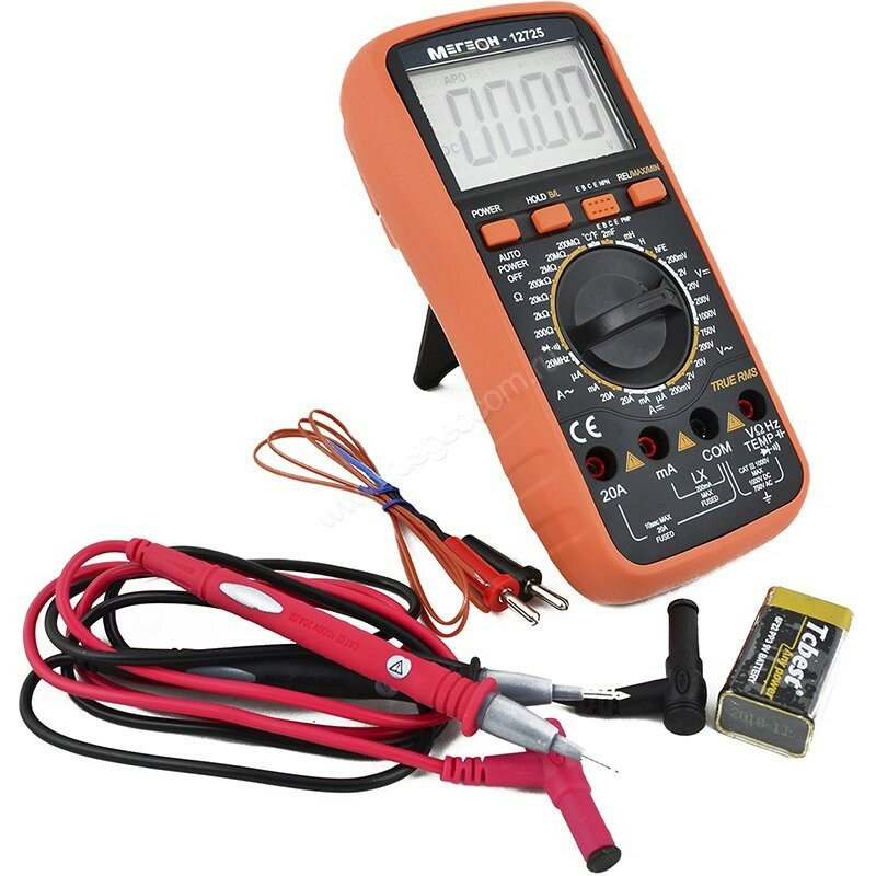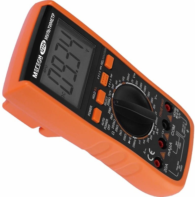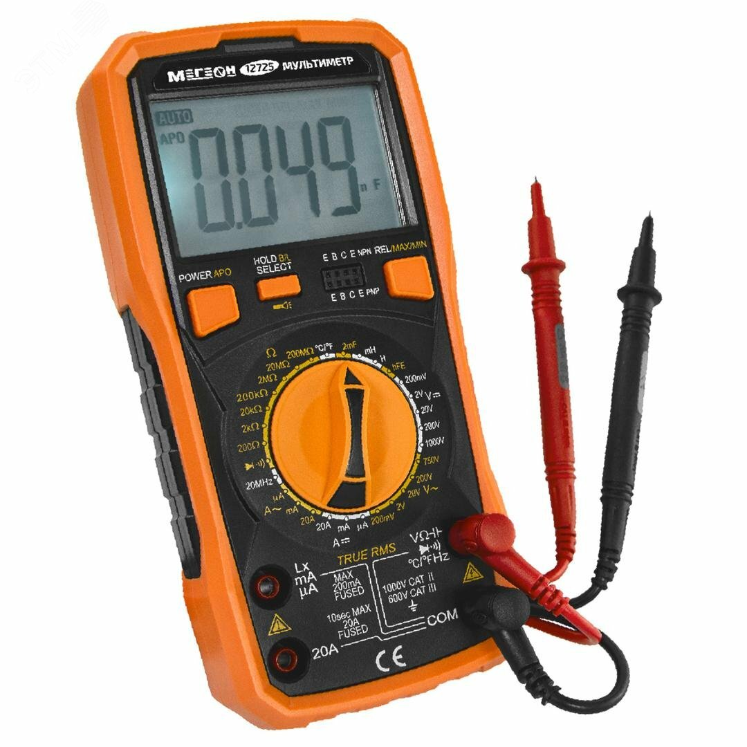 Надежный и высокоэффективный цифровой мультиметр МЕГЕОН (TrueRMS) предназначен для измерения переменного (True RMS) и постоянного напряжения, переменного (True RMS) и постоянного тока, сопротивления, емкости конденсаторов, индуктивности, частоты, температуры (шкала Цельсия/Фаренгейта), проверки диодов, проверки транзисторов и прозвонки соединений.