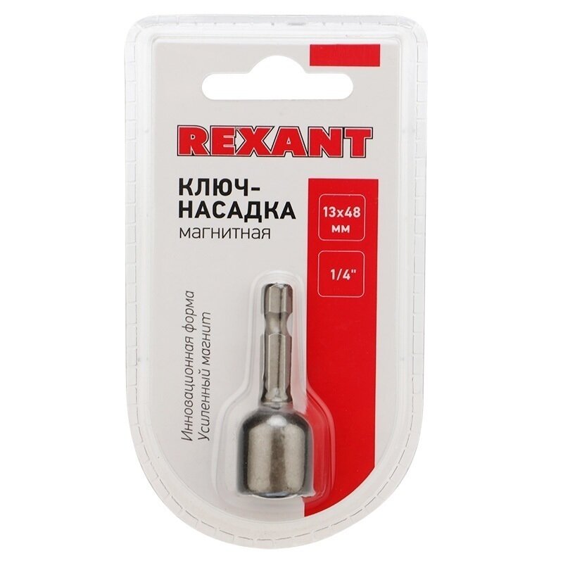 Ключ-насадка REXANT предназначена для совместной работы с шуруповертом, дрелью или отверткой с шестигранным посадочным отверстием для бит (1/4"). Позволяет быстро и легко откручивать кровельные саморезы, болты, гайки и т. д. Во внутреннюю часть насадки впрессован мощный магнит, который помогает фиксировать и удерживать крепеж. Специальная форма предотвращает сколы краски, в случае если шляпка окрашена. Хромованадиевая сталь, из которой выполнена оснастка, обладает повышенной прочностью, устойчива к нагрузкам. Инструмент заметно упрощает работу, позволяет выполнять ее быстрее и эффективнее. Размер ключа 13, длина 48 мм.
