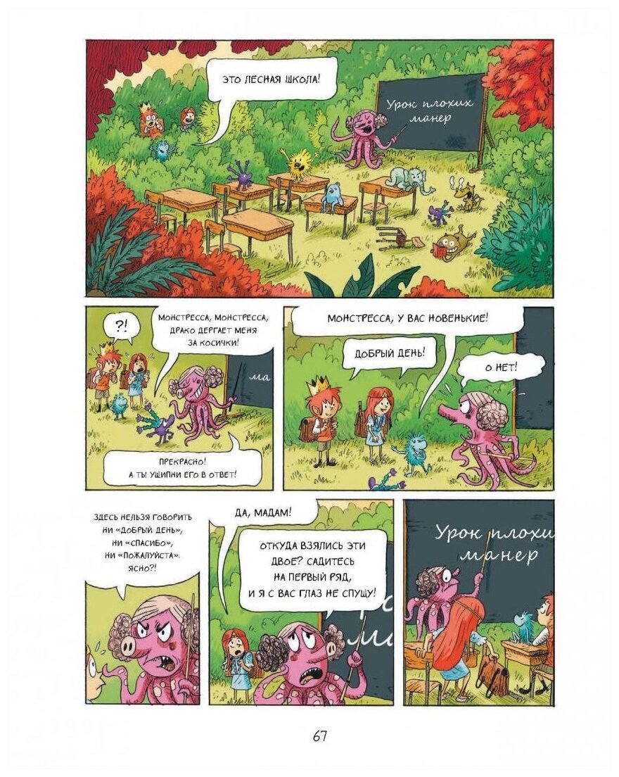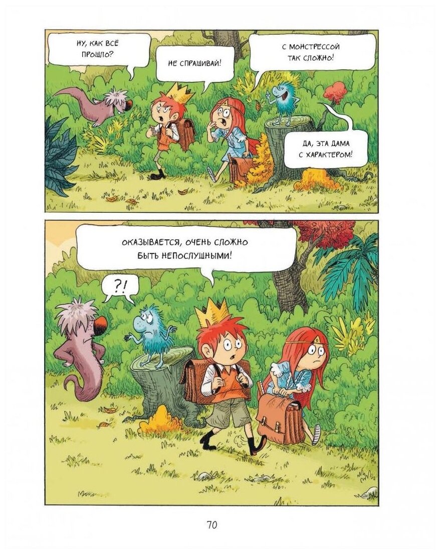 Тяжело быть принцем и принцессой. Приходится учиться этикету, выполнять скучные задания гувернантки, мадам Дисциплинды, и успевать ходить в школу. Но как же здорово, что рядом всегда есть монстры, готовые прийти на помощь и устроить незабываемое веселье! Эмиля и Марго ждут потрясающие приключения: они устроят охоту на ночные кошмары, сорвут урок садоводства, отправятся на экскурсию за зеркальную раму и сделают многое-многое другое. Главное, не попасться гувернантке: она терпеть не может монстров. В замок им вход запрещен!
