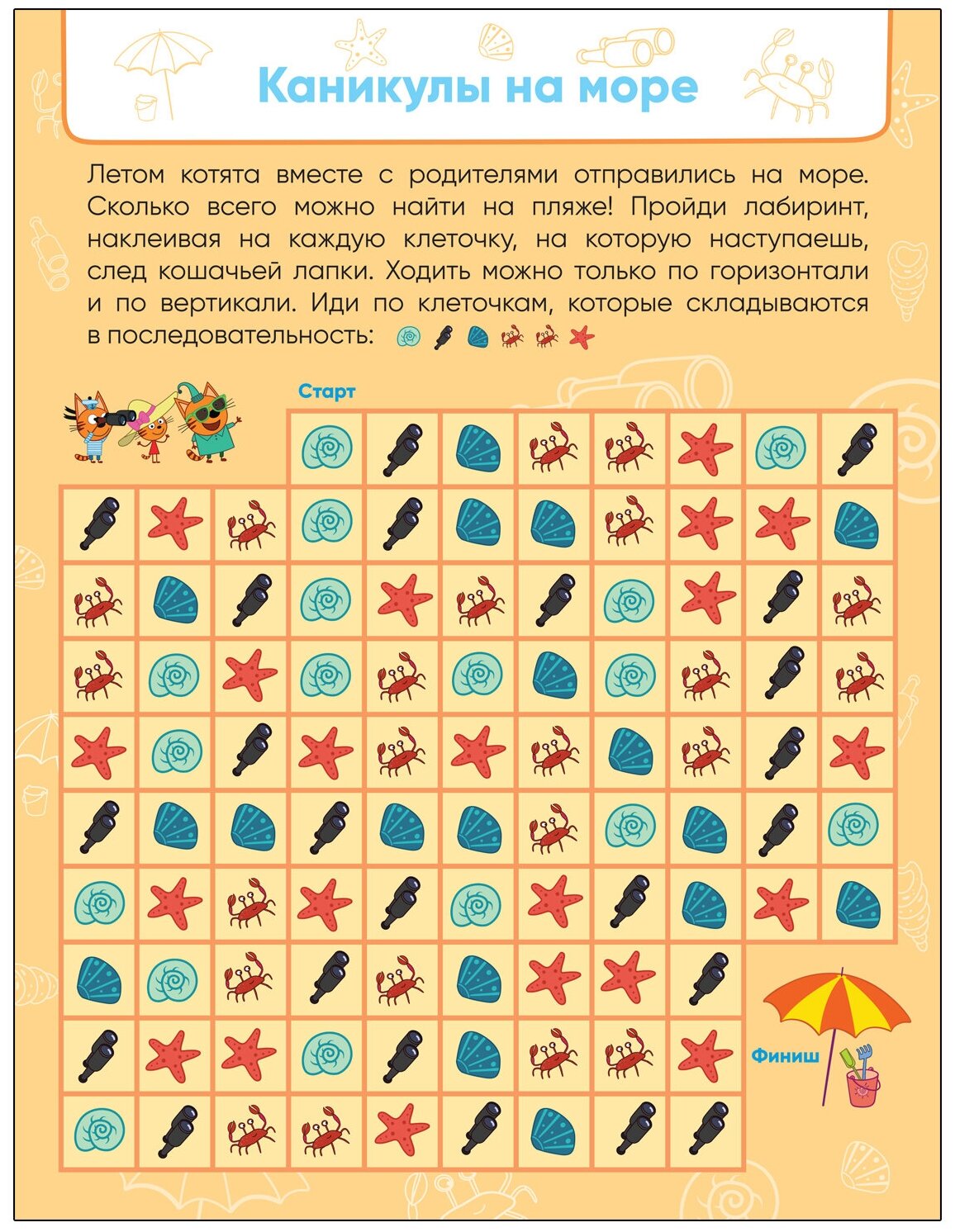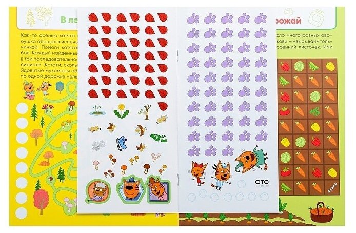 В книге «Времена года» ребенка ждут занимательные лабиринты, посвященные четырем временам года. Это отличный способ расширить представления малыша о сезонных изменениях. А еще на каждой страничке — веселая история про приключения котят и их друзей, а также задание, которое нужно выполнить при помощи наклеек. Проходя лабиринты и приклеивая наклейки, незаметно для себя малыш потренирует внимание, мелкую моторику и мышление. Только вперед! Миу-миу-миу!