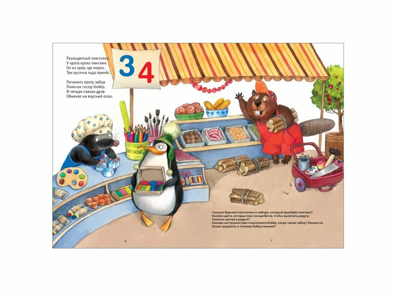 Эту книгу стоит приобрести хотя бы из-за потрясающих иллюстраций художника Любови Ереминой. С удовольствием разглядываем вместе с дочерью. На каждом развороте радуют яркие и сочные картинки и задания с вопросами для малыша. Можно изучать цифры, алфавит, животных, цвета. Текста очень мало и это отлично. Слог хороший и простой, ребенок двух лет с удовольствием листает страницы.