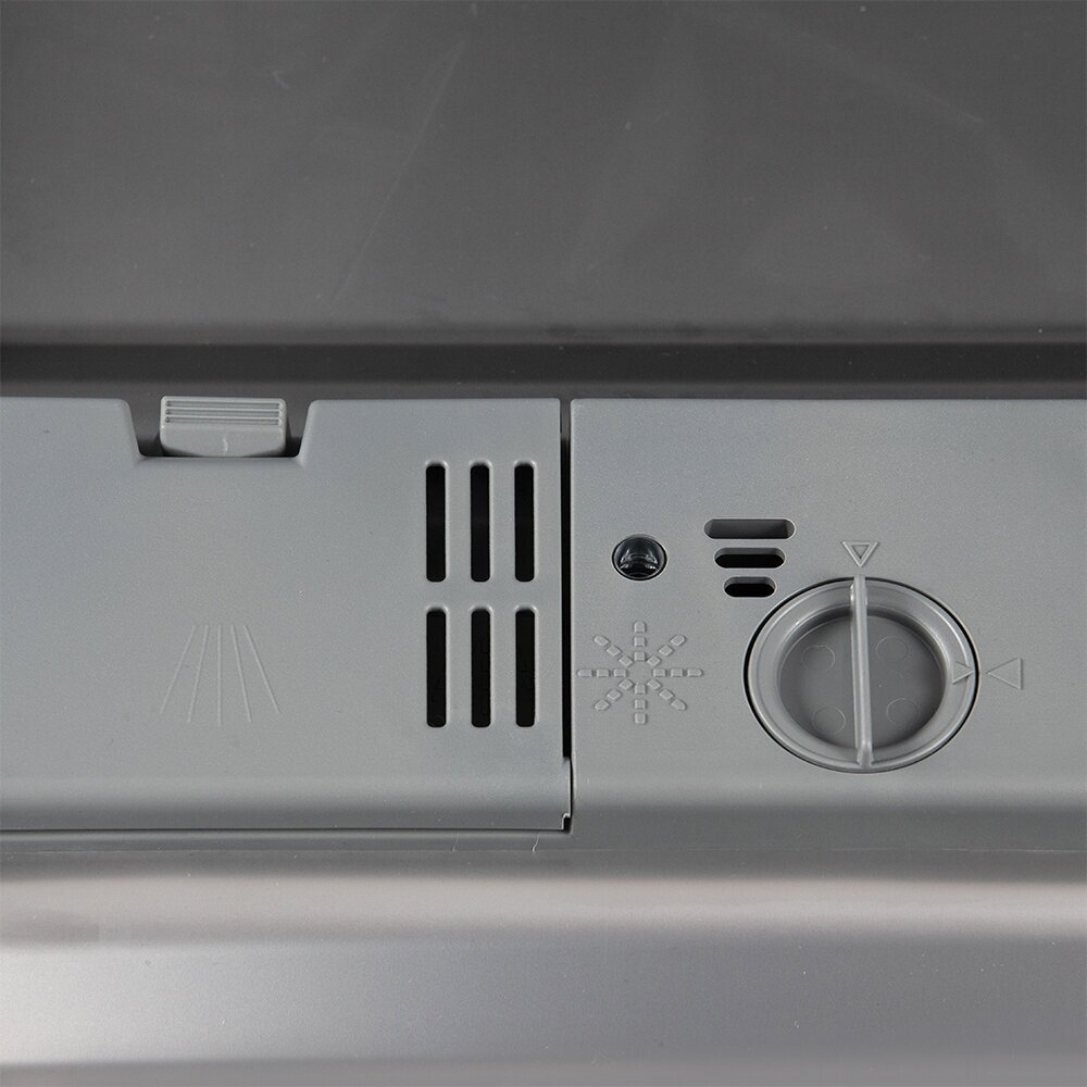 Панель управления расположена на верхней части дверцы. На ней размещены индикаторы, отображающие время до конца цикла и наличие воды. Также есть дисплей, который показывает температуру и уровень соли.