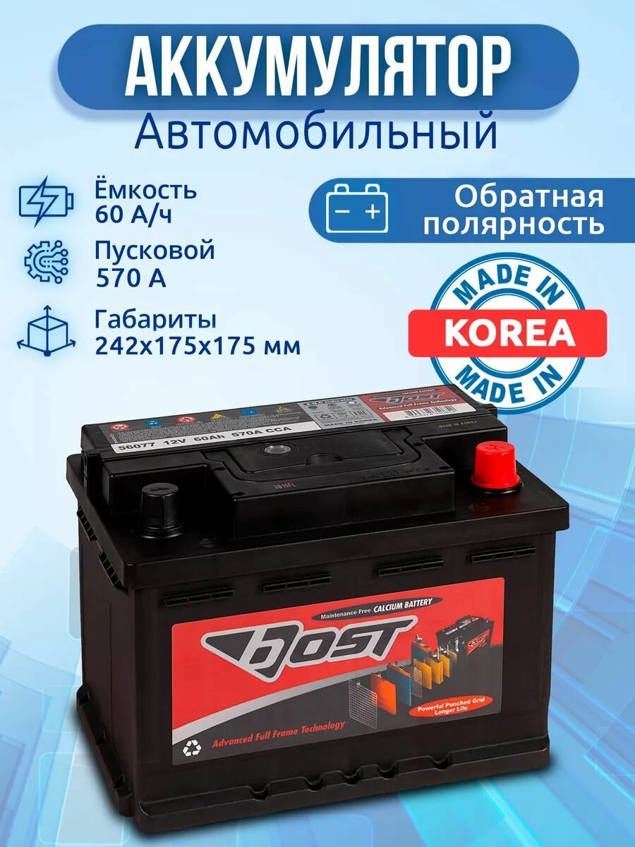 Автомобильный аккумулятор Bost 60 Ач обратная полярность LB2 (56077)