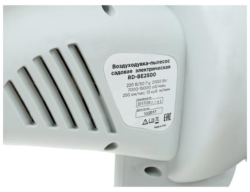 Прочие особенности и свойства | Электрическая воздуходувка-пылесос REDVERG RD-BE2500 6623907 используется для уборки листвы и мелкого мусора на приусадебном участке., , Имеет функции выдува и всасывания, что расширяет возможности аппарата., , Вместительный мешок 45 литров помогает выполнять продолжительную работу без перерывов на очистку., , Плечевой ремень обеспечивает комфорт при использования пылесоса. |