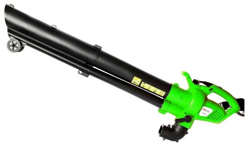 Комплектация | Воздуходувка-пылесос - 1 шт.; труба всасывающая/выдувная - 1 шт.; мешок для сбора мусора - 1 шт.; колеса направляющие - 1 шт.; ремень наплечный - 1 шт.; винты - 5 шт.; инструкция - 1 шт. |