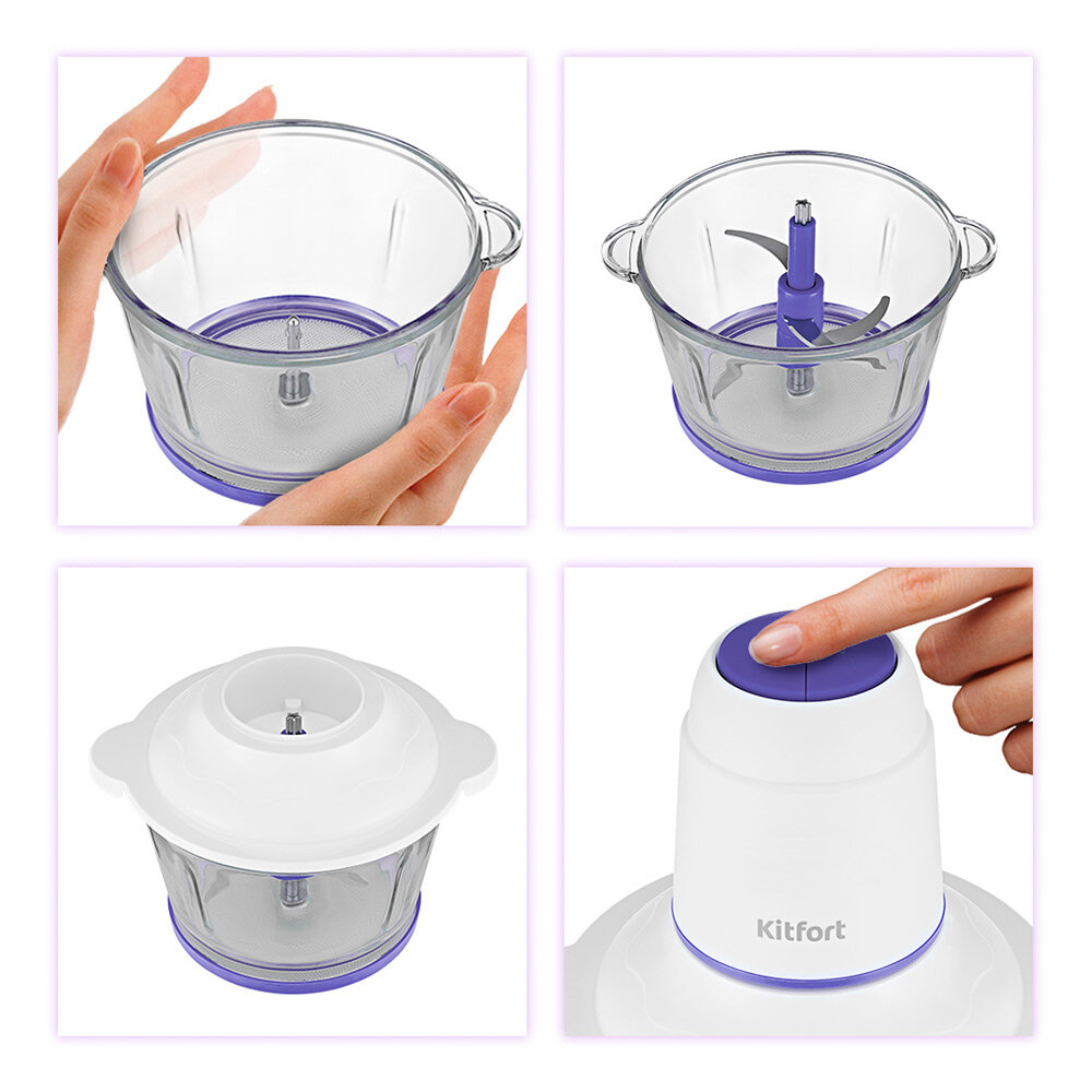 Измельчитель электрический Kitfort 1.5л. 400Вт белый/фиолетовый КТ-3050-1
