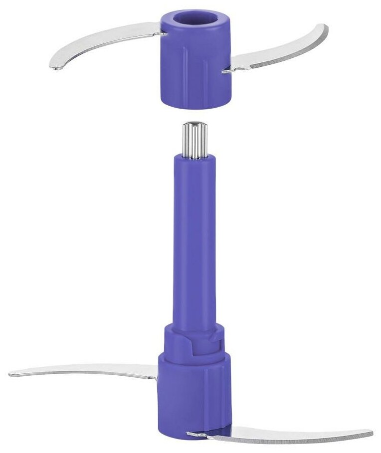 Благодаря форме ножей и их взаимному расположению, измельчение продуктов проходит быстро и по всей высоте чаши, обеспечивая однородные измельчение всей массы продуктов. Блок ножей разборный, поэтому их легко и просто мыть.