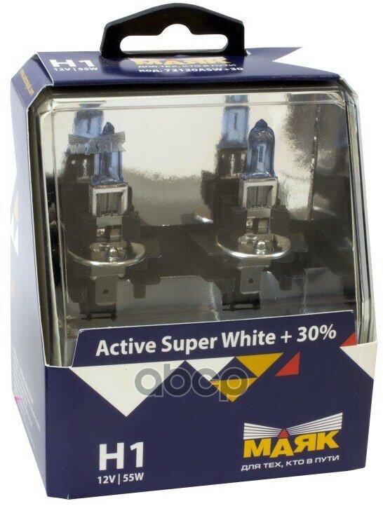Лампа автомобильная галогенная МАЯК H1 12В 55Вт 2шт 72120ASW+30