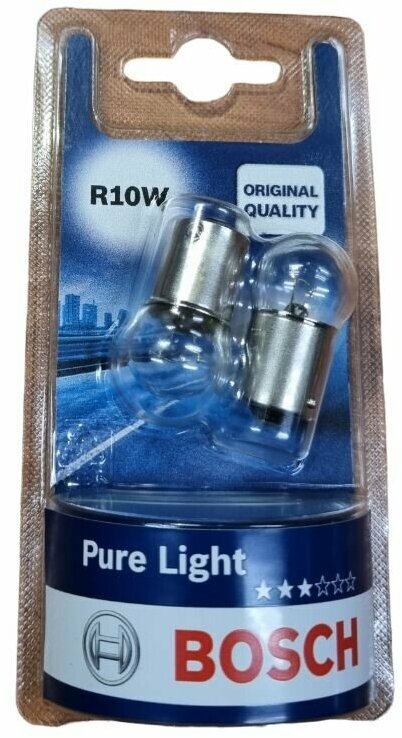 Лампа автомобильная галогенная Bosch R10W 12В 2шт 1987301019