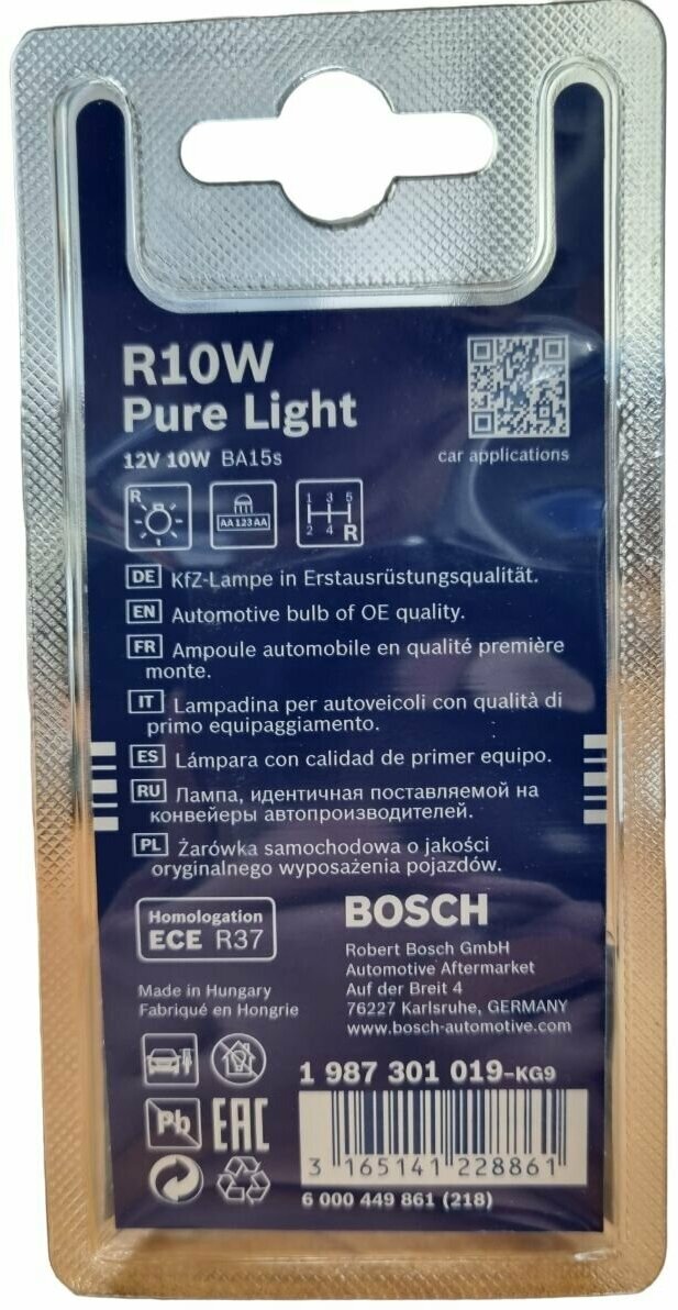На сегодняшний день товар «Лампа автомобильная галогенная Bosch R10W 12В 2шт 1987301019» можно купить с кешбеком в 1 магазине: Яндекс.Маркет