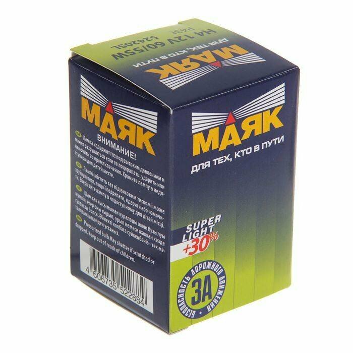 Лампа автомобильная галогенная МАЯК H4 12В 1шт 52420SL