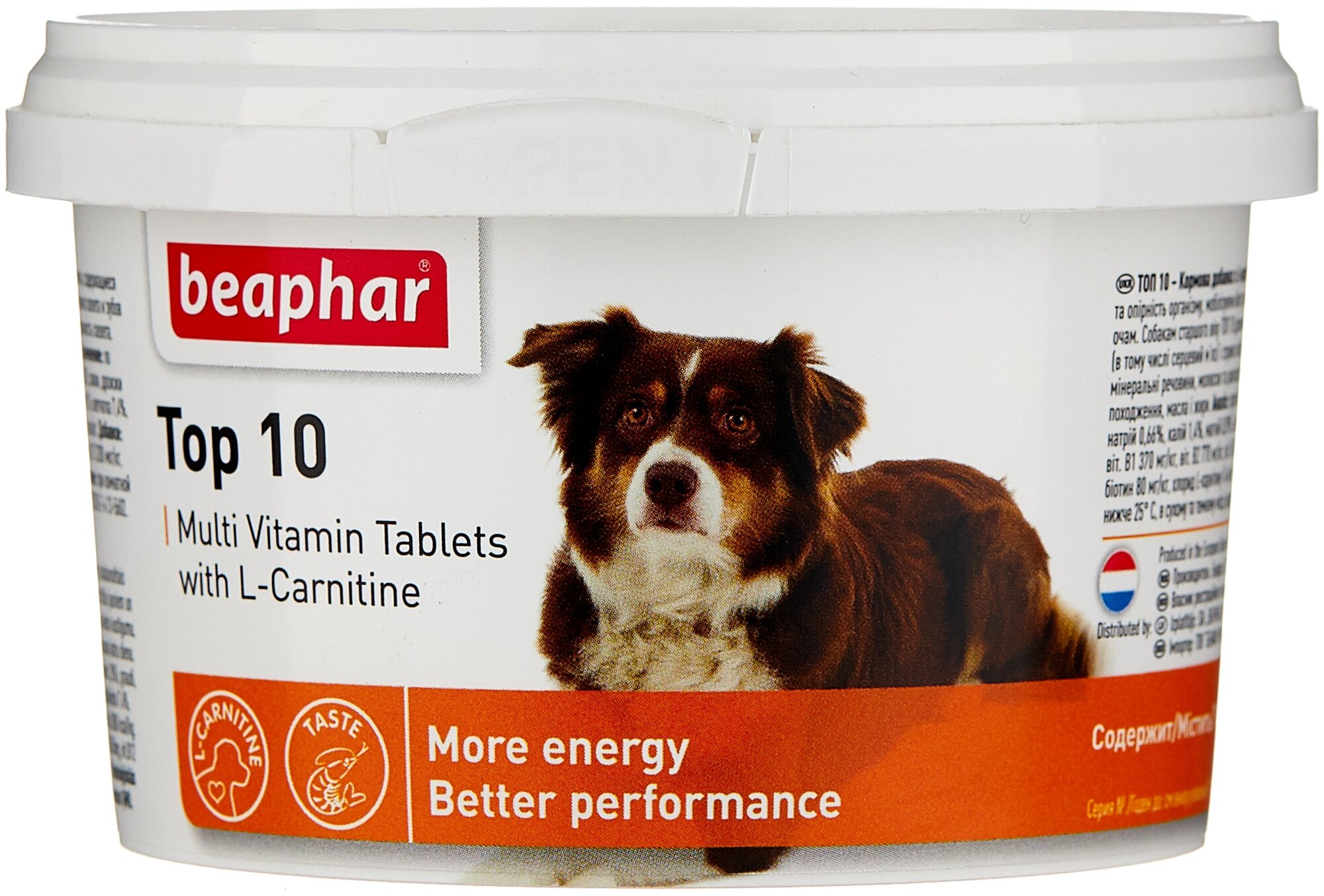 Витаминно-минеральная добавка для собак Beaphar Top 10 с L-карнитином таблетки 180 таб.